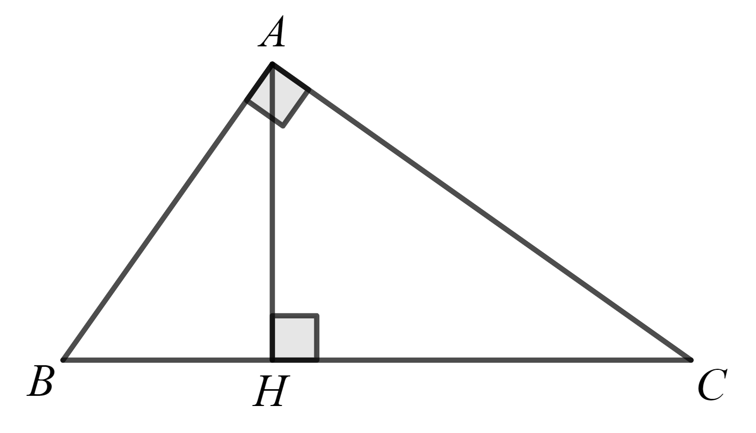 Soit le triangle \(ABC\) rectangle en \(A\) et \(\overline{AH}\) la hauteur.